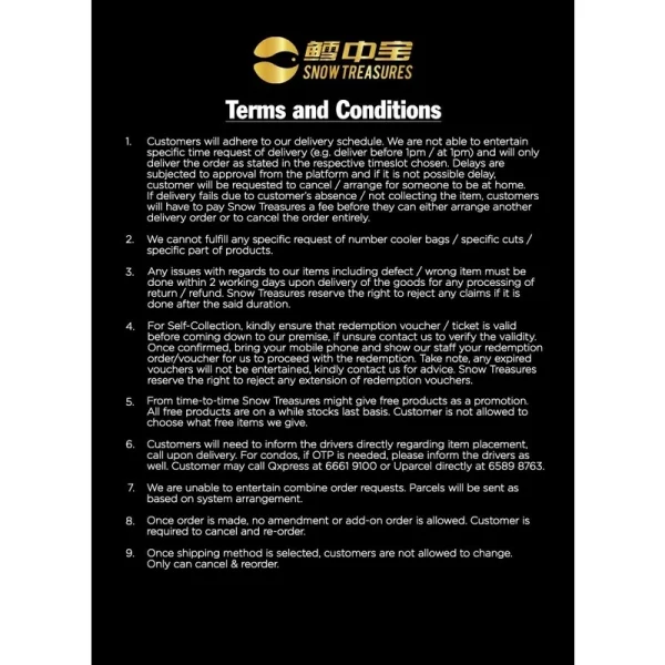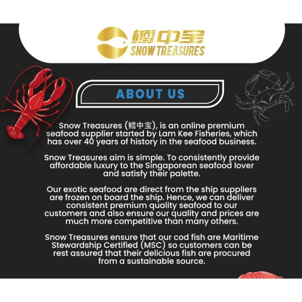 *Do note that there might be a 5-8% difference in weight given moisture in product / blast freezing.
