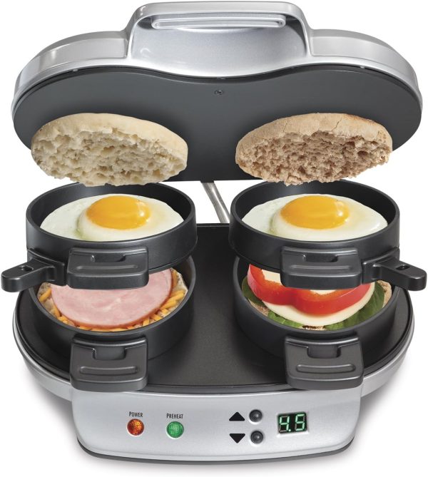 Hamilton Beach Dual Breakfast Sandwich Maker withAudible Digital Timer, Silver , 25490C