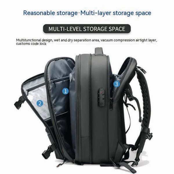 Say goodbye to bulky suitcases! Our Multi-Function Backpack is designed for modern travelers who need space, organization, and ultimate convenience. With its built-in vacuum storage, you can pack more while carrying less – no more struggling with overstuffed bags!
