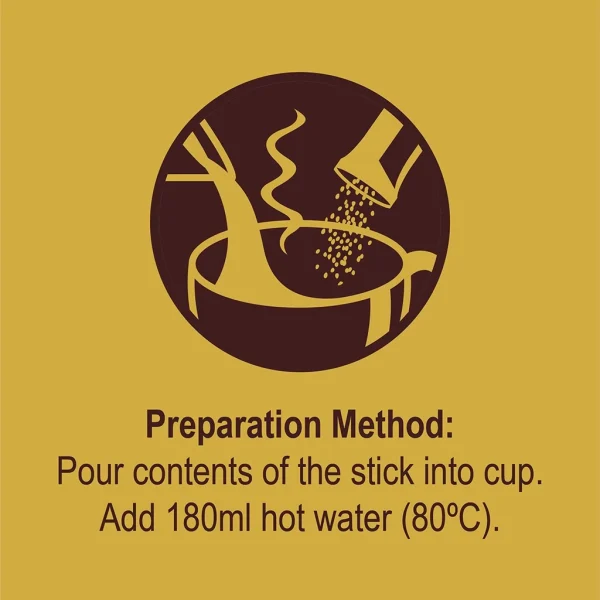 -Pour contents of the stick into a cup. Add 180ml hot water (80°C)