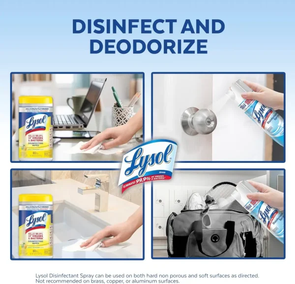 - DISINFECTING WIPES FOR CLEANING: Disinfect and deodorize with the fresh smell of Lemon and Lime Blossom Lysol Disinfecting Wipes. Safely wipe down spills and remove allergens, including pet dander, dust mites, and pollen.