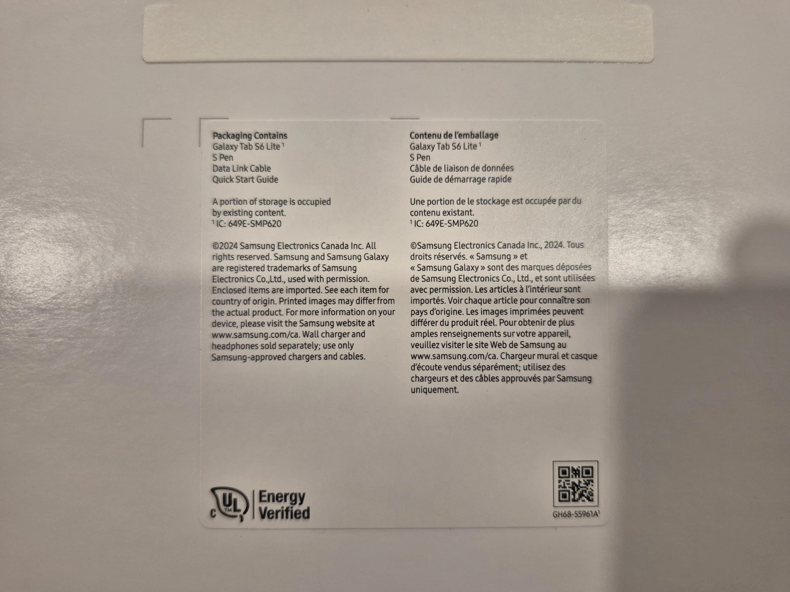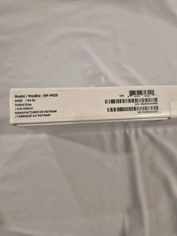 This is a Samsung Galaxy Tab S6 Lite Wi-Fi, 10.4″ (SM-P620, 64GB, Gray), unpacked but never activated or used. The tablet has been opened for inspection but remains factory fresh and fully functional, providing the same experience as a brand-new device.